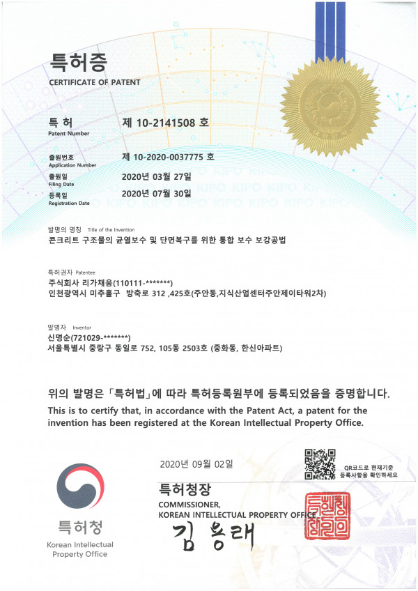 콘크리트 구조물의 균열보수 및 단면복구를 위한 통합 보수 보강공법