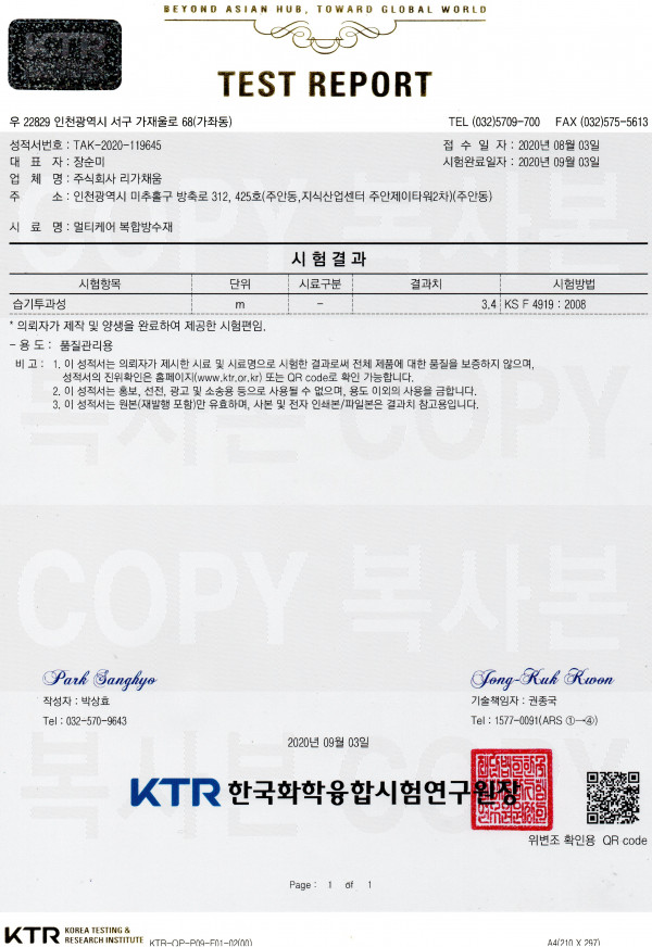 멀티케어 복합방수재-습기투과성