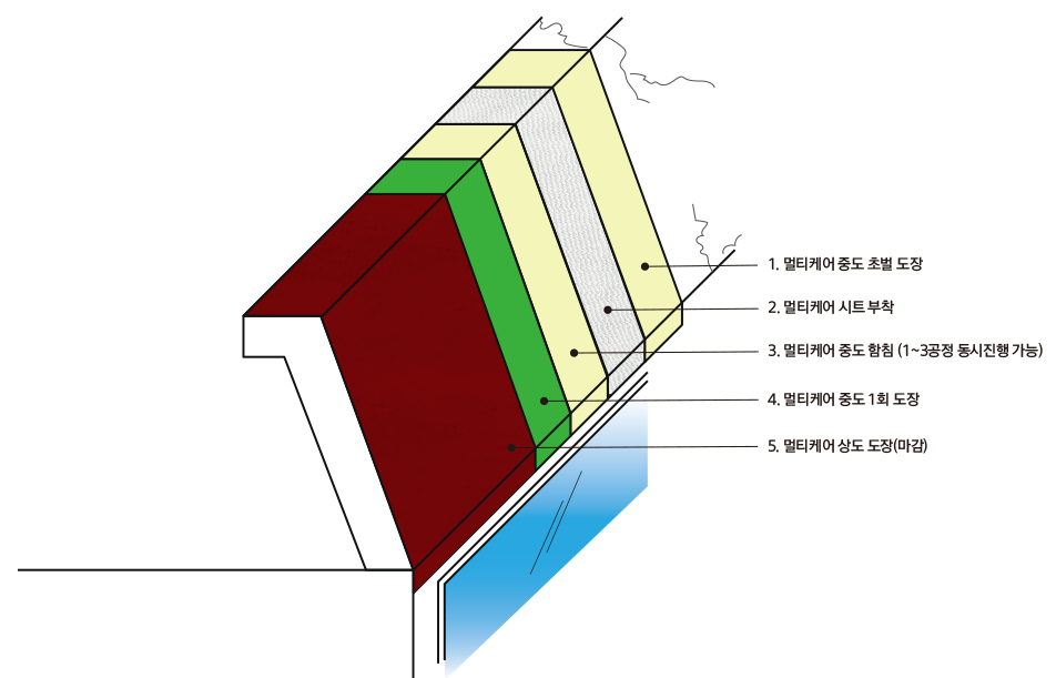 함침으로 형성된 방수층위에 완벽한 방수성능 및 인장강도 증진을 목적으로 1회에 걸쳐 도포합니다.
